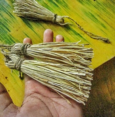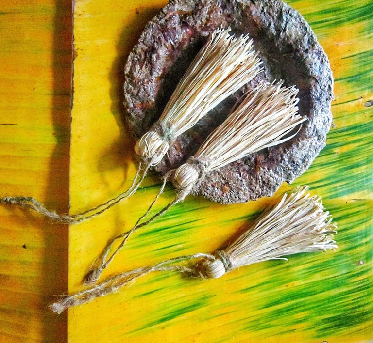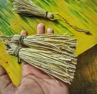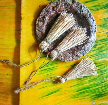 Sustainable corn husk tassel for your perfectness, unique eco-friendly decor for any of your stuff like home decor,bag decor,pouch decor and more.This is a really unique sustainable tassels ornament.All ingredient made from sustainable material.Tassel made from corn husk which small handmade cutting with hand and tie the long pieces of tassel with jute rope.Natural jute rope also for hang of this tassel.For more special for you this tassel will come for one set in the three pieces.Make more sustainable feeling of your home decor and stuff ornament with this organic one set tassel.This tassel original from corn husk and without chemical color,just corn husk and jute rope.