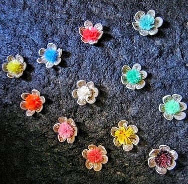 Recycle paper flower quilling.Beautify recycle mini blossom for perfect unique decoration from make bautify of your gift decor,scrapbook flower ornamentation and special moments of your decor.