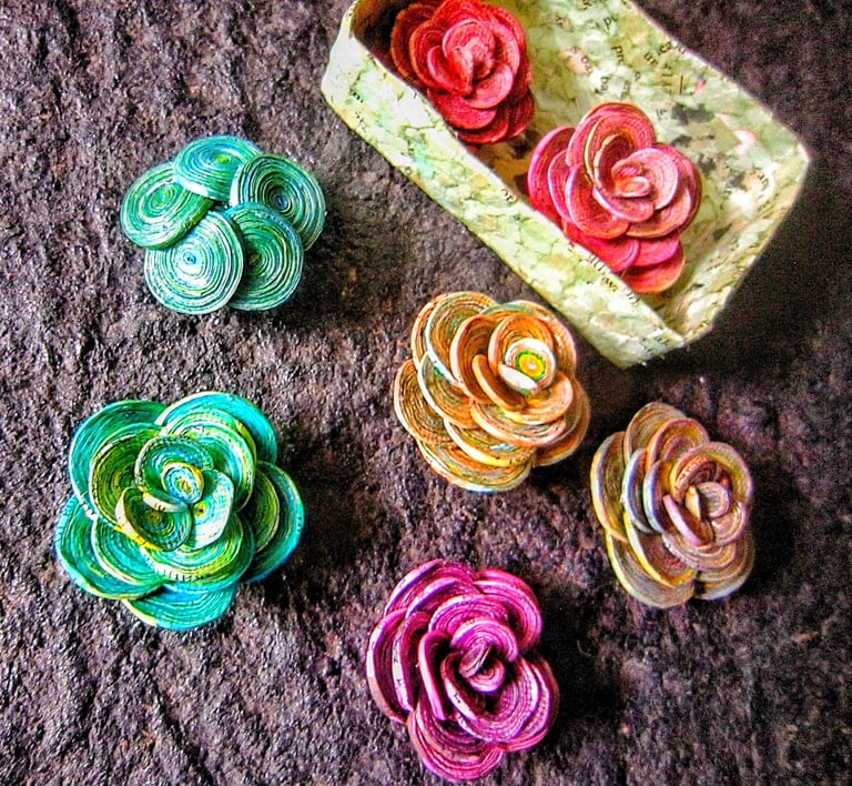 Recycled paper rose quilling in marble color perfect for blossom rose decor